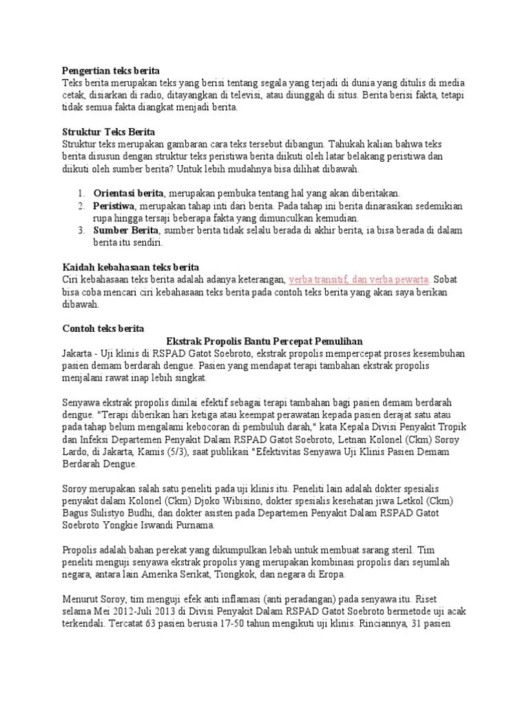 Struktur teks berita · 1. Orientasi berita ini yang akan menggiring pembaca untuk dibawa pada inti berita. Teks berita adalah teks yang melaporkan kejadian, peristiwa atau informasi mengenai sesuatu yang telah atau sedang . Selain yang disampaikan oleh jerman rn, masih banyak ahli yang kemudian memaparkan definisi paragraf berita. Selain itu, pengunjung warteg hanya sebanyak 3 orang.