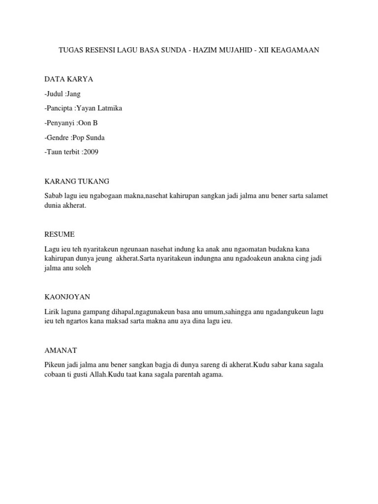 Saya sertakan lirik asli dalam bahasa sunda, dan terjemahan bebas dalam bahasa indonesia. F cing jujur tong bohong Download lagu dj angklung jang cing jadi jalma soleh mp3 dan mp4 di metrolagu. Jang hirup teh teu gampang teu cukup ku dipikiran. Yang pinter dan bener, yang jujur jangan bohong, jangan nyakitin orang biar hidup banyak sodara, jaga ucapan perilaku kebiasaan supaya .